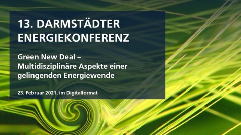The Darmstadt Energy Conference takes place on 23 February 2021 as a digital event. This year's title is “Green New Deal – Multidisciplinary aspects of a successful energy transition”. Interested parties from research, teaching, business and the public sector are invited to gather and exchange information on current and exciting topics related to the energy transition.