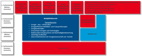 Der Studiengang ist als ein viersemestriges Vollzeitstudium angelegt, modular aufgebaut, und umfasst 120 Kreditpunkte. Das erste Semester umfasst eine Reihe von Grundlagenveranstaltungen, in denen den Studierenden das Grundlagenwissen vermittelt wird, das sie nicht aus ihrer Bachelor-Ausbildung mitbringen. Diese Module sind speziell für den Studiengang Energy Science and Engineering konzipiert.